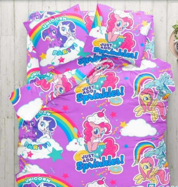 Комплект постільної білизни Полуторний бязь голд люкс 150х220 см Єдиноріг поні лол рожевий