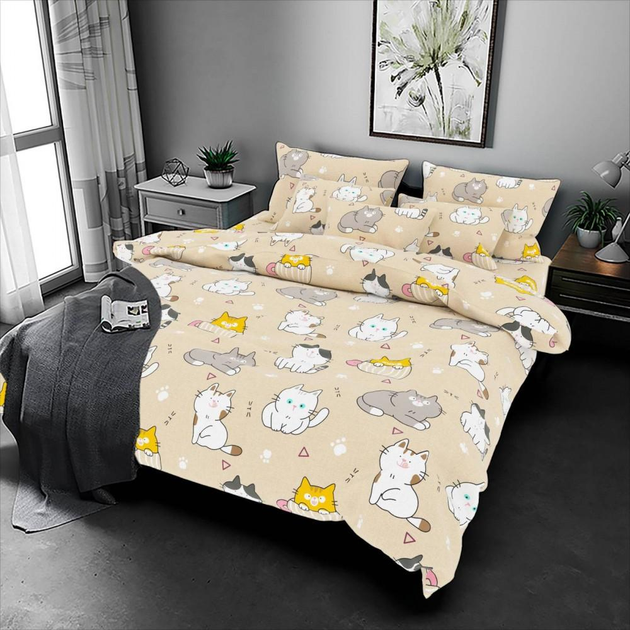 Комплект постільної білизни Moon night 100 бавовна полуторний 150 x 220 см 2 х 70 х 70 см пісочний кошеня