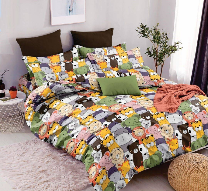 Комплект постільної білизни Moon night 100 бавовна полуторний 150 x 220 см 2 х 70 х 70 см різнобарвний котики