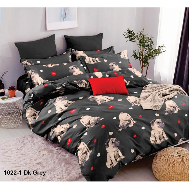 Комплект постільної білизни Moon night 100 бавовна полуторний 150 x 220 см 2 х 70 х 70 см чорний мопс