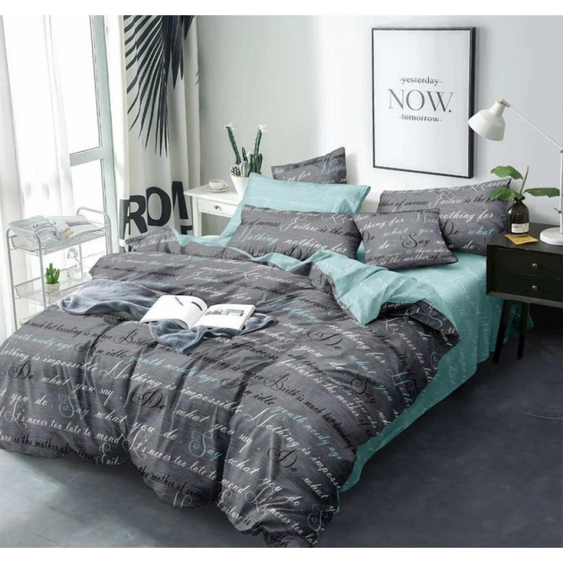Комплект постільної білизни Moon night 100 бавовна полуторний 150 x 220 см 2 х 70 х 70 см телегрей і блакитний