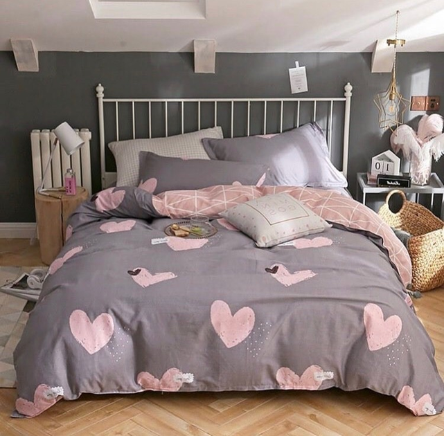 Комплект постільної білизни Sweet-Dream Рожеве серце 180 х 215 см двоспальний сірий