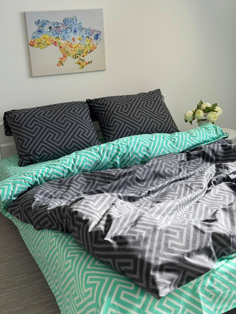 Комплект постільної білизни Moon night 100 бавовна полуторний 150 x 220 см 2 х 70 х 70 см фталоціаніновий зелений