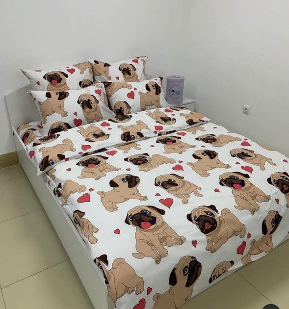 Комплект постільної білизни Полуторний бязь голд люкс 150х220 см Собачки мопси сердця