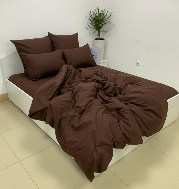 Комплект постільної білизни Полуторний однотонний бязь голд люкс 160х220 см Коричневий шоколадний