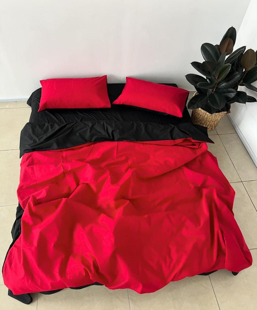 Комплект постільної білизни Полуторний однотонний бязь голд люкс 150х220 см Чорний червоний