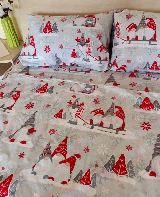 Новорічний комплект постільної білизни Гноми 2 бязь gold полуторний