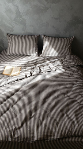Комплект постільної білизни Бязь Голд Люкс Сіра смужка Полуторний 150х210 (000569)
