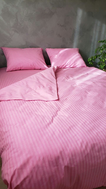 Комплект постільної білизни Бязь Голд Люкс Рожева в смужку Полуторний 150х210 (000536)