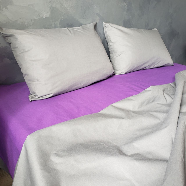 Комплект постільної білизни Бязь Голд Люкс Сіра з фіолетовим Полуторний 150х210 (000533)