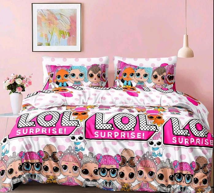 Комплект постільної білизни Полуторний бязь голд люкс 150х220 см Лол єдиноріг білий