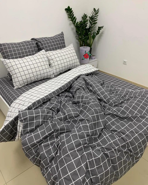 Комплект постільної білизни Полуторний бязь голд люкс 160х220 см Клітинка сірий білий абстракція