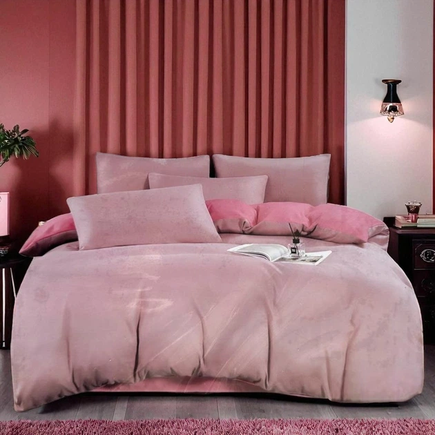 Комплект постільної білизни двоспальний KOLOCO сатин (42085) Пудра з рожевим
