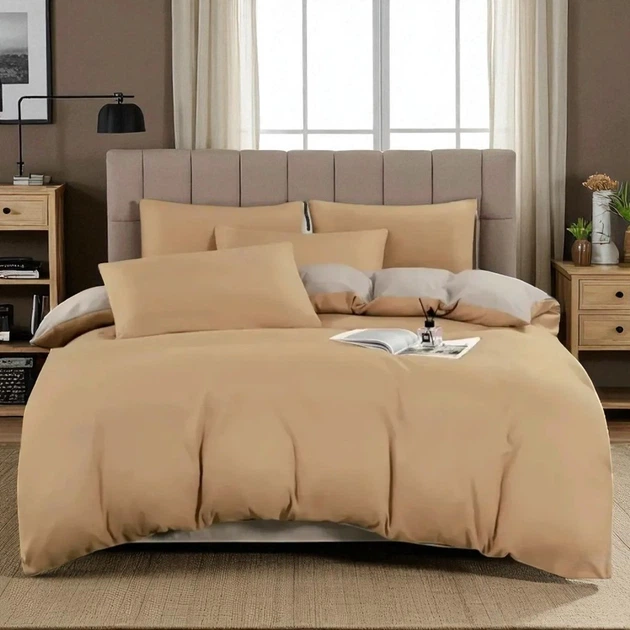 Комплект постільної білизни двоспальний KOLOCO сатин (42089) Бежевий із сірим