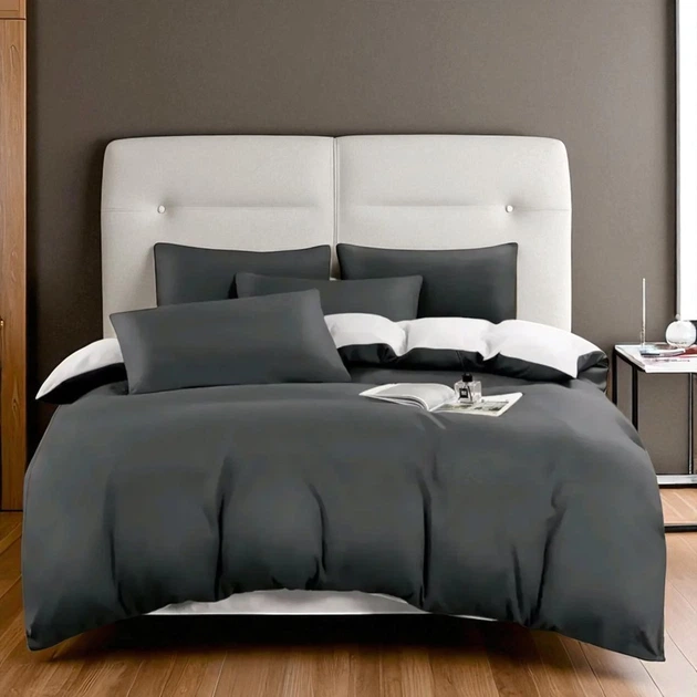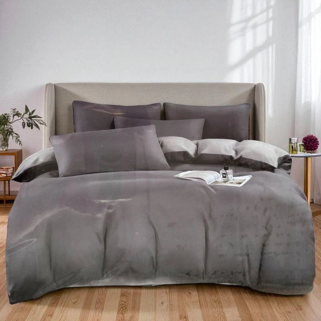 Комплект постільної білизни двоспальний KOLOCO сатин (42087) Темно-сірий з сірим