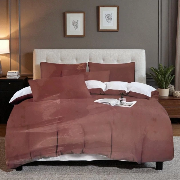 Комплект постільної білизни двоспальний KOLOCO сатин (42080) Теракотовий з білим