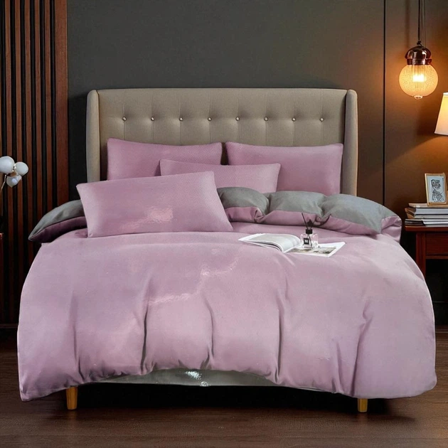 Комплект постільної білизни двоспальний KOLOCO сатин (42083) Бузковий з сірим