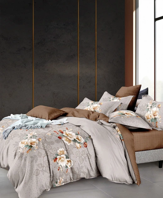 Комплект постільної білизни Moon&Star Микросатин Premium «Floral Mocha» сімейний 143х210х2 наволочки 2х70х70 (MS-820005032)