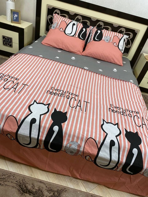Комплект постільної білизни Soft євро 200х220 см коти чорний і білий