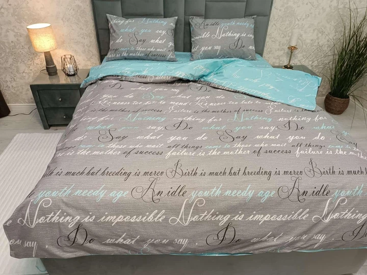 Комплект постільної білизни бязь голд люкс євро 200 х 220 см сіро/блакитний