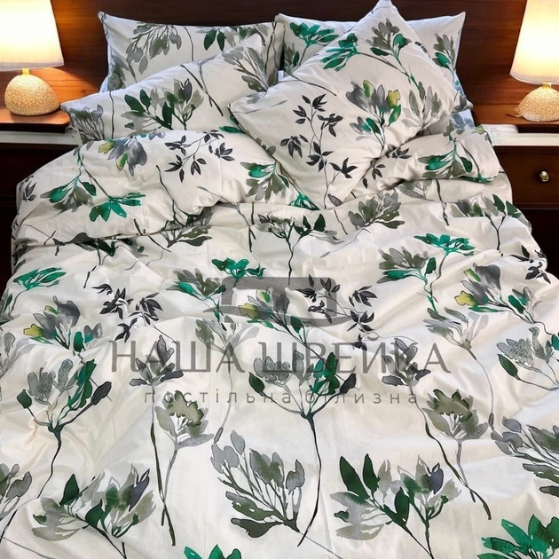 Комплект постільної білизни Наша Швейка Бязь Сіро-зелений принт Полуторний 150х215 см