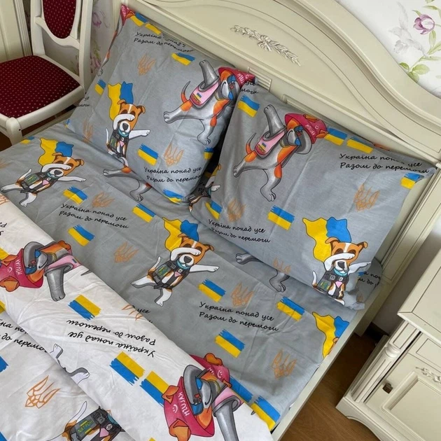 Постільна білизна двоспальна сіро-біла Пес Патрон Бязь Голд Ananasko 514894