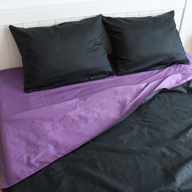 Постільна білизна двоспальна чорна з фіолетовим Бязь Голд Ananasko 514028