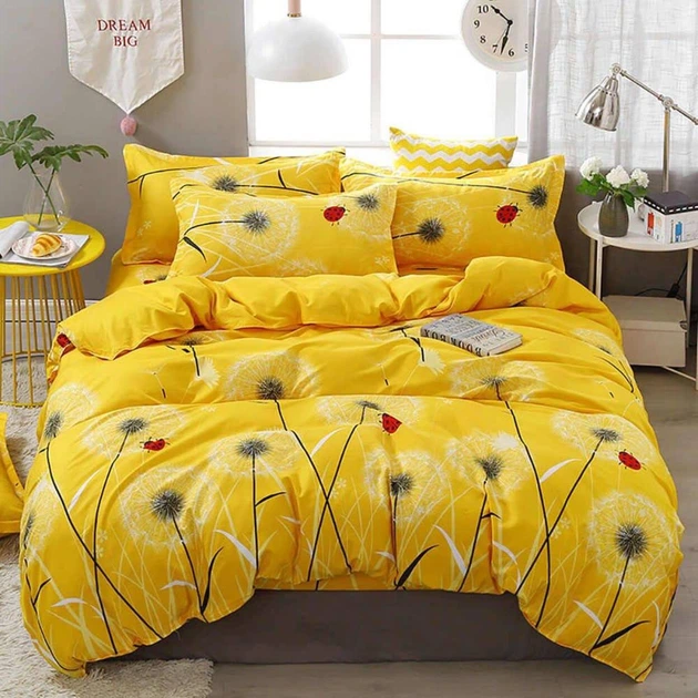 Постільна білизна двоспальна жовта Кульбабки Бязь Голд Ananasko 512953