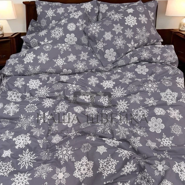 Комплект постільної білизни Наша Швейка Сніжинки на сірому фоні Полуторний 150х215 см