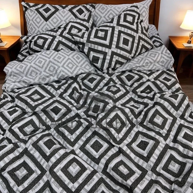 Комплект постільної білизни Наша Швейка Чорні ромби на сірому Полуторний 150х215 см