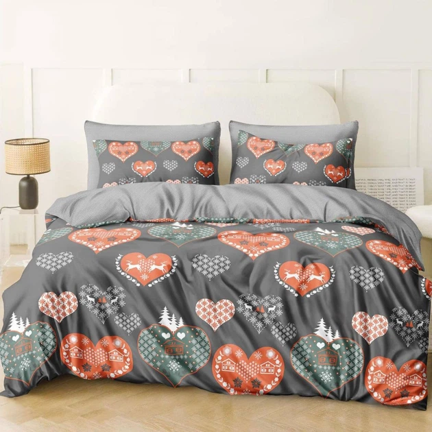Постільна білизна двоспальна темно-сіра з сірим Сердечка Бязь Голд Ananasko 515558