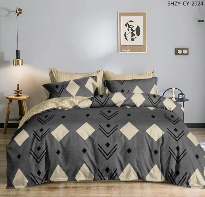 Фабрична бавовняна постільна білизна класу-А Полуторний 145 х 210 наволочка 70х70 2шт Бежевий із сірим (24585207)