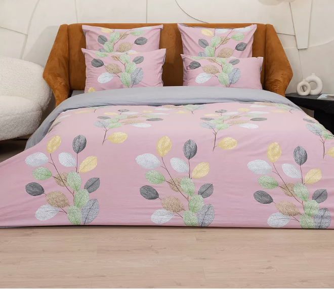 Фабрична бавовняна постільна білизна класу-А Полуторний 145 х 210 наволочка 70х70 2шт Рожевий із сірим (24585206)