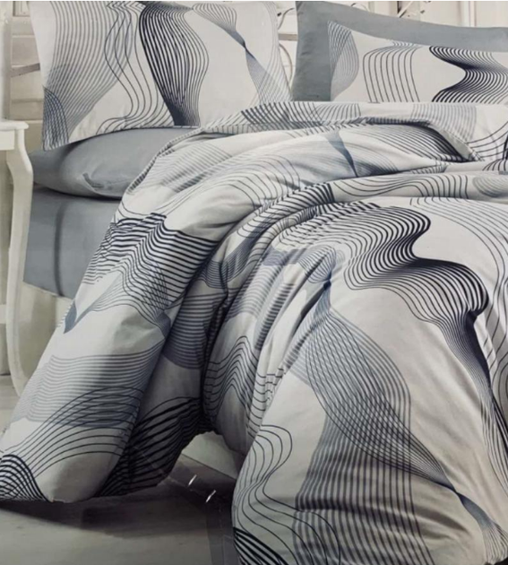 Фабрична бавовняна постільна білизна класу-А Полуторний 145 х 210 наволочка 50х70 2шт Сірий з білим (24585209)