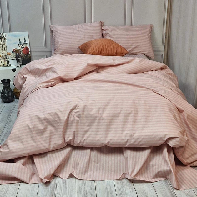 Постільна Білизна Двоспальна Бязь Рожевий Смужки Базова Однотонна Полуторний (342003)