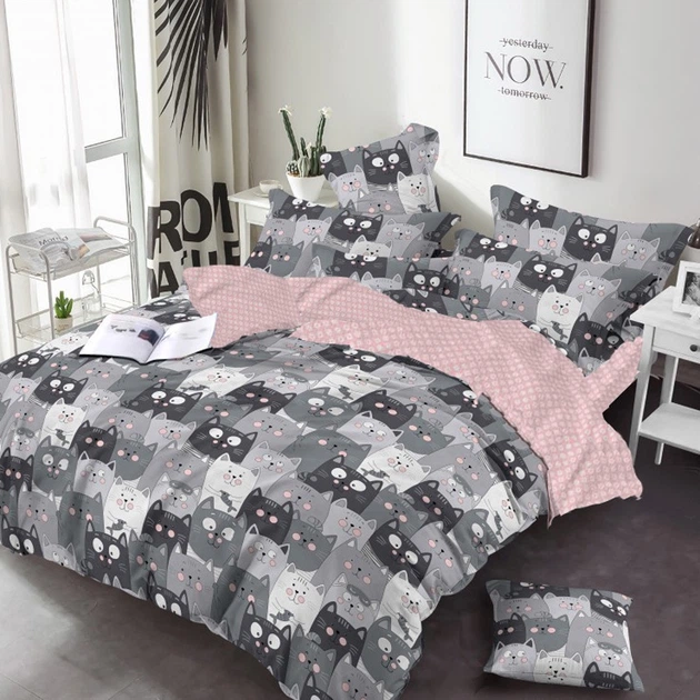 Комплект постільної білизни Sweet-Dream Котики 200 х 215 см євро рожевий