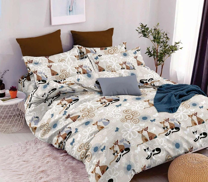 Комплект постільної білизни Коти двоспальний 180*215 Бязь Голд Люкс Бежевий