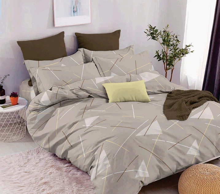 Комплект постільної білизни Абстракція трикутники двоспальний 180*215 Бязь Голд Люкс Бежевий