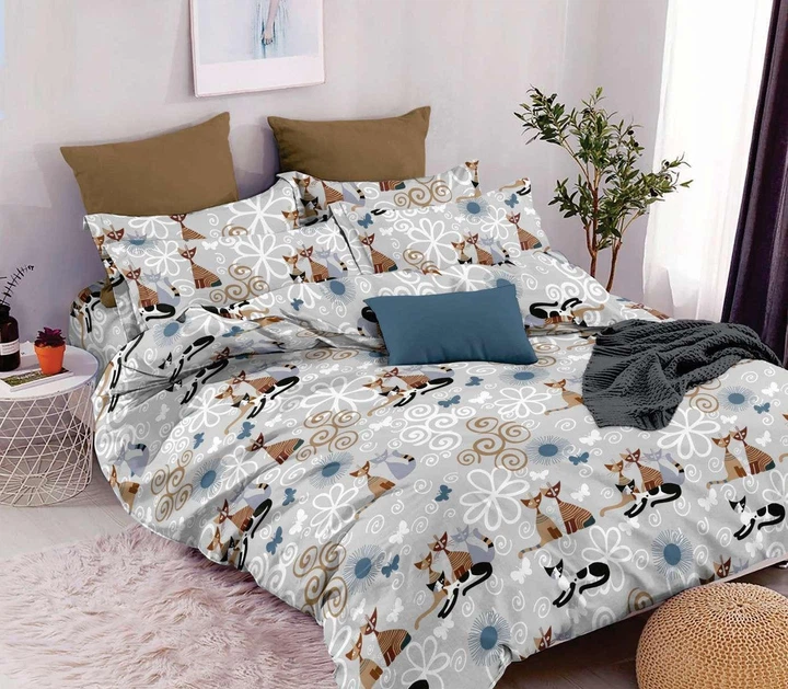 Комплект постільної білизни Коти на сірому двоспальний 180*215 Бязь Голд Люкс