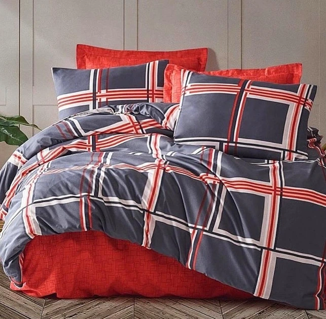 Комплект постільної білизни Двоспальний бязь голд люкс 180х220 см Клітинка сірий червоний