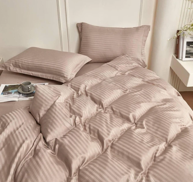 Комплект постільної білизни Євро Colorful Home страйп сатин бежевий