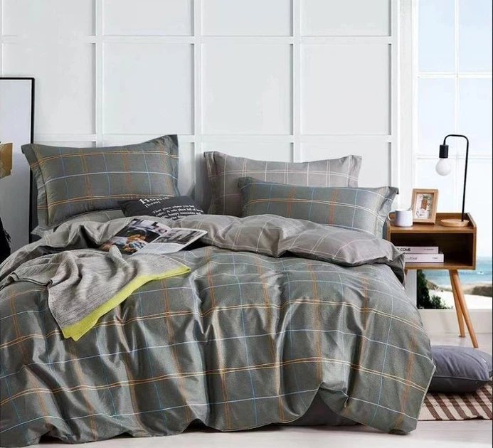 Комплект постільної білизни Клітинка двоспальна 180*215 Бязь Голд Люкс Сірий