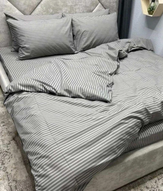 Комплект постільної білизни Двоспальний бязь голд люкс 180х220 см Смужки сірий