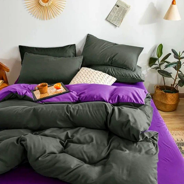 Комплект постільної білизни Двоспальний однотонний бязь голд люкс 180х220 см Графітовий фіолетовий
