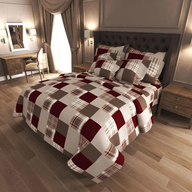 Комплект постільної білизни Клітинка двоспальний Шотландія 180*215 Бязь Голд Люкс