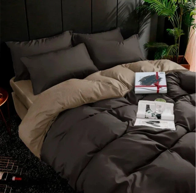 Комплект постільної білизни Двоспальний однотонний бязь голд люкс 180х220 см Бежевий коричневий шоколадний