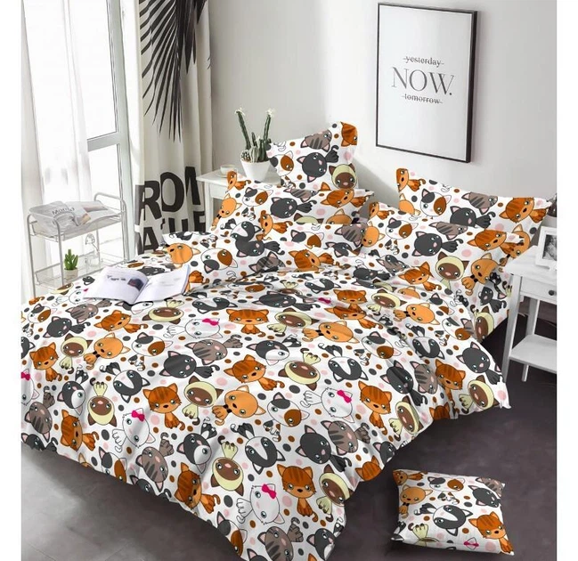 Комплект постільної білизни Котики двоспальні 180*215 Бязь Голд Люкс Білий