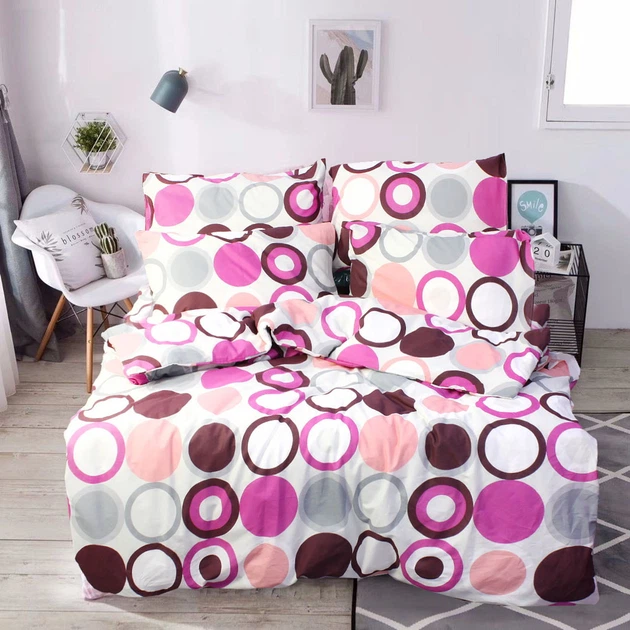 Подвійний постільний комплект Т0784 Еней-Плюс, колір: білий, фіолетовий, коричневий