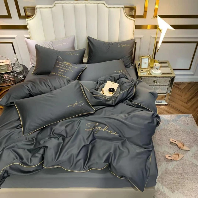 Полуторний комплект постільної білизни Crown 150*220 см сатин графітовий p2696182176