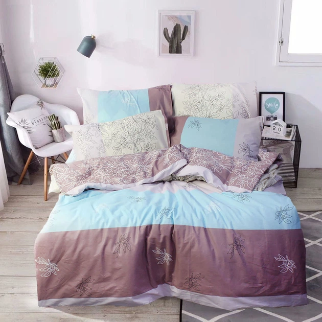 Подвійний постільний комплект Т0798 Еней-Плюс, колір: коричневий, блакитний